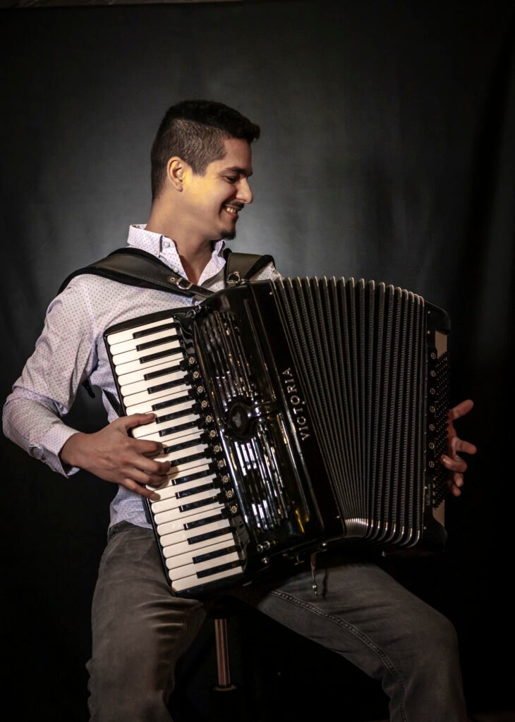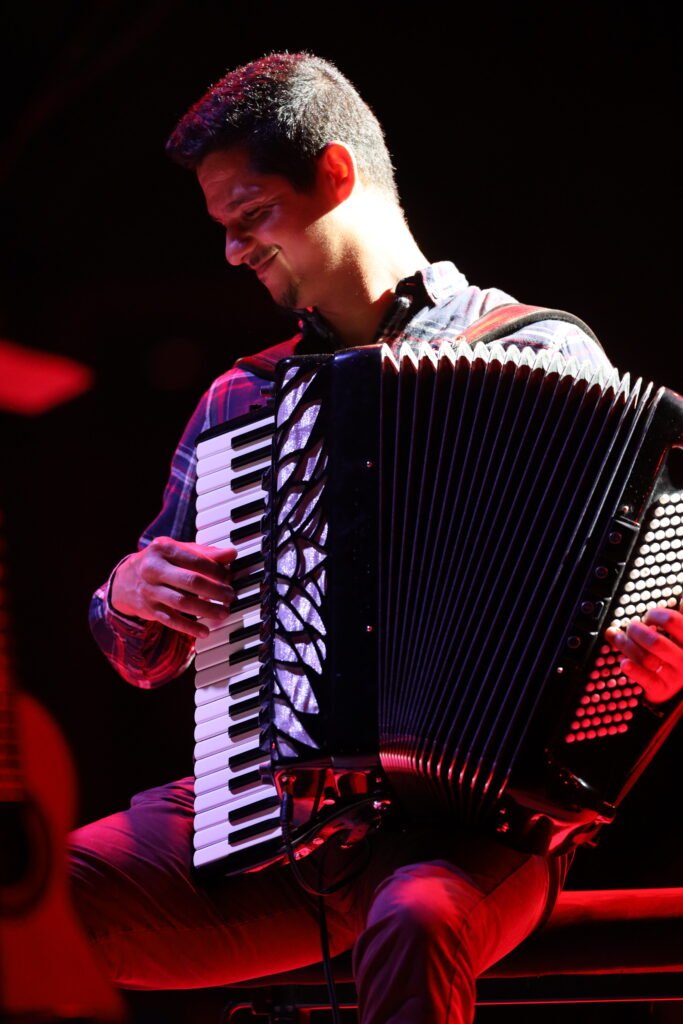 Douglas Marcolino personifica a alma do Nordeste brasileiro. Apresentado ao acordeão ainda muito jovem por seu pai, Tiao Marcolino, gravou seu primeiro álbum aos oito anos e aprimorou sua arte ao lado de alguns dos maiores músicos: Dominguinhos, Hermeto Pascoal e Gennaro do Acordeon. Sua jornada o levou a todos os cantos do Brasil e muito além. Em 2010, uma turnê internacional o levou a Paris, cidade que o cativou e onde escolheu se estabelecer em 2011. Hoje, ele viaja pelo mundo, representando com orgulho o forró e explorando novos sons, sempre guiado por sua paixão e virtuosismo.